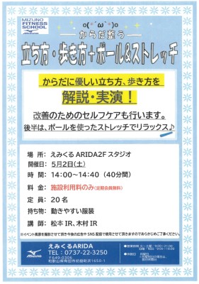 からだに優しい立ち方、歩き方を解説・実演いたします!! 定員20名ですが、予約不要です。 皆様のご参加お待ちしております。 詳細は下記画像・ダウンロードからご覧下さい。
