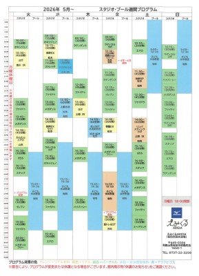 5月~のスタジオ・プール週間プログラムを配信させていただきます。