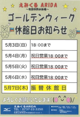 【ゴールデンウィークの休館日のお知らせ】