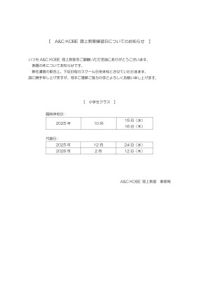 10/15(水)・16(木)A&C KOBE 陸上教室 休校のお知らせ