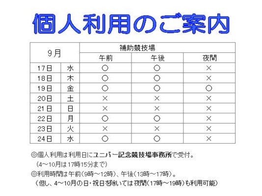 9月17日から9月24日までの個人利用の日程が