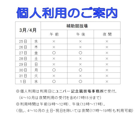 3月25日から4月1日までの個人利用の日程が