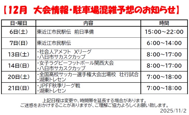 また、大会日には駐車場が混雑する可能性がございますので、ご了承ください。