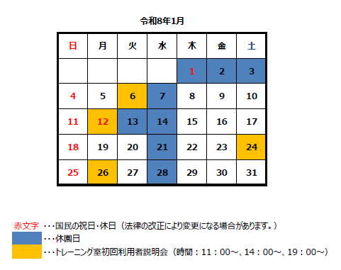 【1月度】トレーニング室初回利用者説明会の開催日程のお知らせ