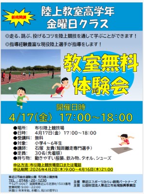 新規開講!キッズ陸上高学年教室(金曜日クラス)無料体験会を実施します