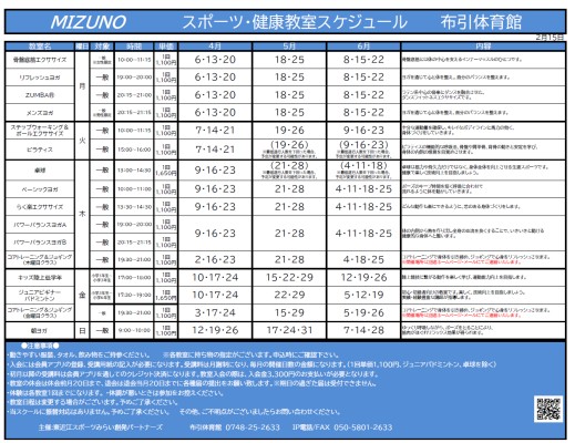 【教室スケジュール】布引体育館教室スケジュールのお知らせ(26年4~6月度)