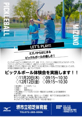 11月20日(木)・12/12(金)にピックルボール体験会を実施いたします。