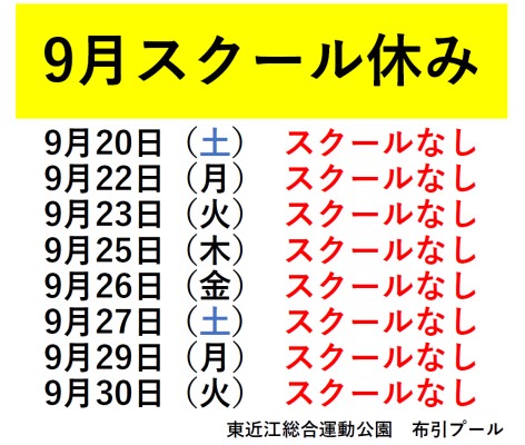 9月スクールお休みについてお知らせいたします。