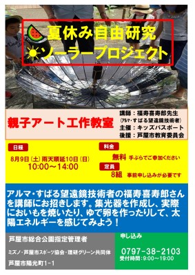 今回は集光器を作り、おイモを焼いたり、ゆで卵を