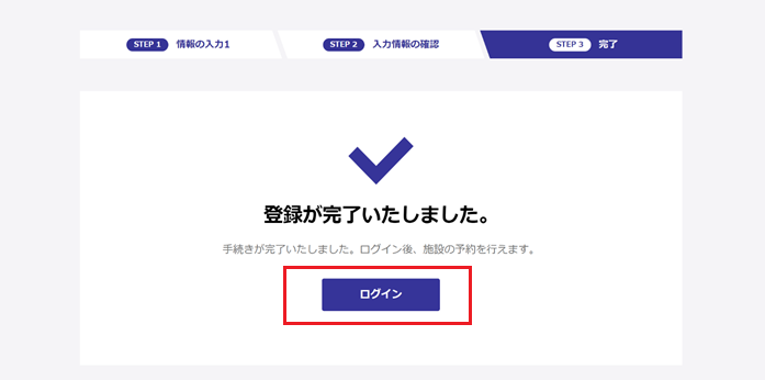 ➃会員情報の登録が完了すると、ログイン画面が開き登録完了となります。