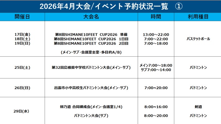 ※月末時点でのイベント状況となるため大会イベント内容の変更がある場合がございます。
