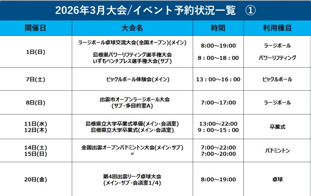 月末時点でのイベント状況となるため大会イベント内容の変更がある場合がございます。