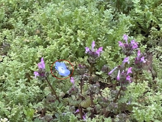 花の径の花壇にボランティアさんに種を蒔いていただいたネモフィラが、大分勢いを増してきました🌱