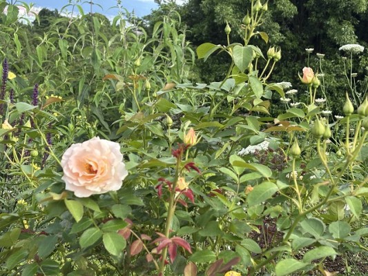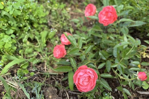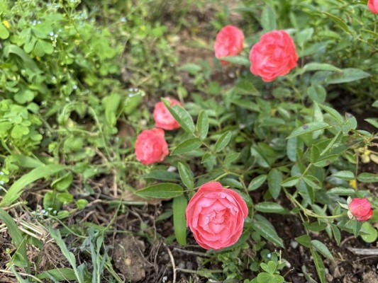 かわいらしいピンク色など、色とりどりのバラが咲いています。