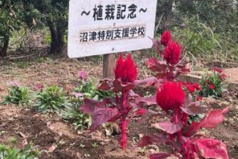 沼津特別支援学校の皆さんに10月に植えていただいたお花がきれいに