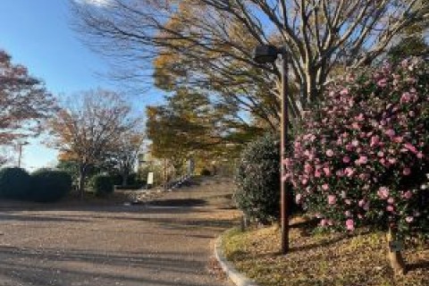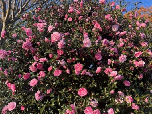 バスロータリーの山茶花が綺麗に咲いて華やかです!