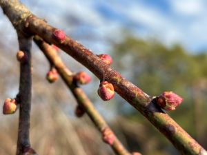 しだれ梅のつぼみが大きくなってきましたよ