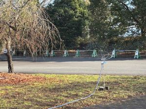 バスロータリーの花壇に水撒きをしています