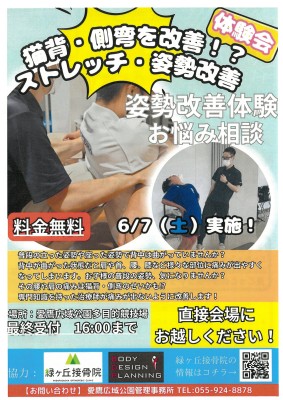当日、姿勢改善体験・お悩み相談も実施致します。