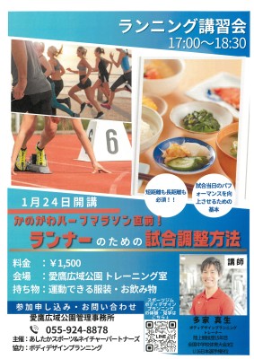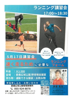ランニング講習会では長距離を走るときに必要な【効率の良い走り】を目指して『足の設置』や『心肺機能について』、さらには『体幹』や『食事について』もスポーツトレーナー兼陸上競技現役の選手がお教えします!