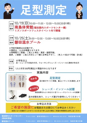 10月25日(土)磐田温水プール玄関で足型測定を行います。