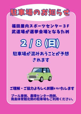 2/8(日)は福田屋内スポーツセンター3F武道場が、衆議院議員選挙の投票会場となっている為