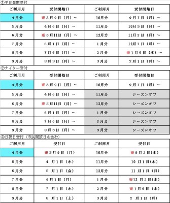 | 施設利用 | ご利用方法および利用料金等の詳細につきましては、以下の各施設のご利用案内からご確認ください。 |