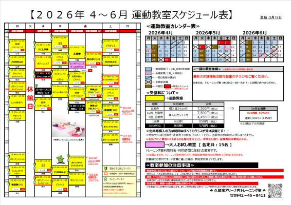 教室特別スケジュール ←追加分はコチラでご確認ください。