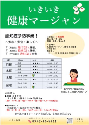 2026年1月~3月に開催する「いきいき健康マージャン」の新規参加者を募集いたします。