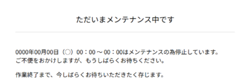 ※メンテナンス時間を過ぎる場合がございます。下記表示がある場合はメンテナンス終了しておりません。