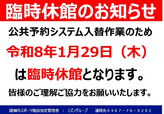 1/29(木)臨時休館のお知らせ