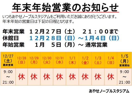 平素よりあやせノーブルスタジアムをご利用頂き誠にありがとございます。
