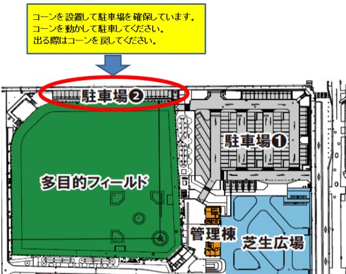 下記の画像の駐車場にコーンを設置しスペースを確保しております。