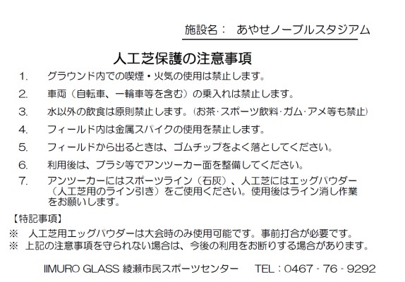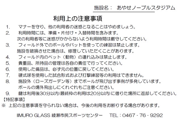 いつもノーブルスタジアムをご利用いただき、誠にありがとうございます。 ノーブルスタジアム利用の注意事項についてお知らせいたします。 皆さまのご利用をお待ちしております。