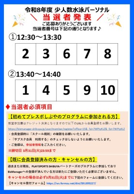 ~少人数水泳パーソナル当落発表~