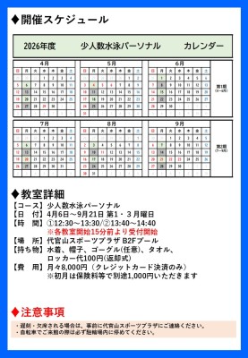 「短期集中!少人数水泳パーソナル」に