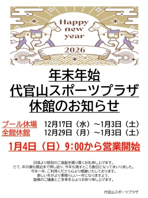 【代官山スポーツプラザ】年末年始のご案内🎍