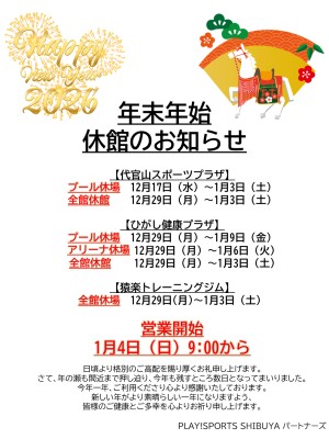 【PLAY!SPORTS!SHIBUYAパートナーズ】年末年始のご案内🎍