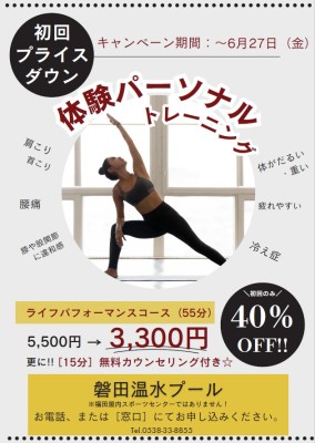 【磐田温水P】体験パーソナルトレーニング初回割引キャンペーン