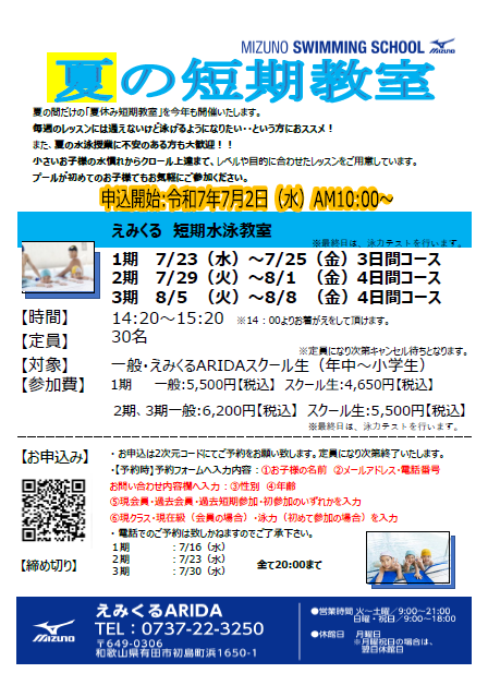 今年も「夏の短期教室」を開催いたします!