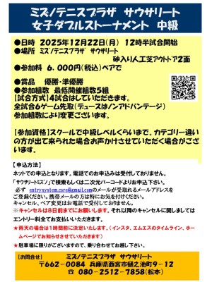 2025年12月22日(月)女子ダブルス中級 (大会)