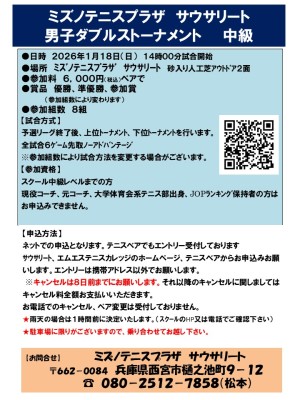 2026年1月18日(日)男子ダブルストーナメント中級の