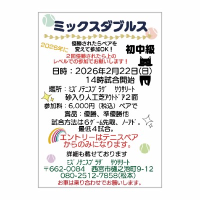 2026年2月22日(日)MIXダブルストーナメント初中級 (大会)