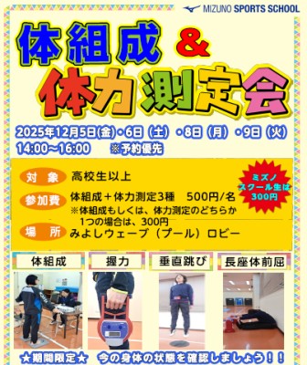 ※体組成もしくは、体力測定のどちらか1つの場合は300円