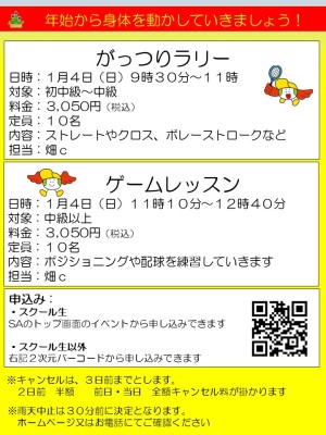 2026年1月4日(日)がっつりラリー&ゲームレッスン (レッスン)