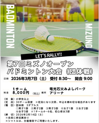 『第7回ミズノオープンバドミントン大会(団体戦)』を開催します!