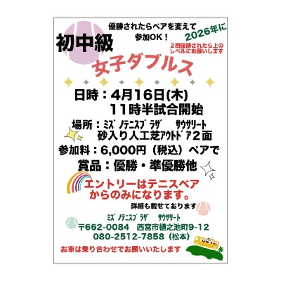 2026年4月16日(木)女子ダブルス初中級 (大会)