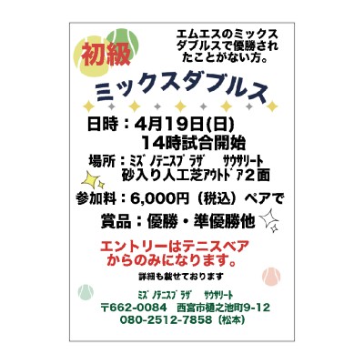 2026年4月19日(日)MIXダブルストーナメント初級 (大会)