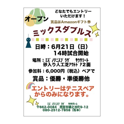 2026年6月21日(日)MIXダブルストーナメントオープン (大会)
