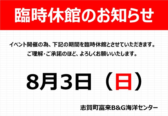 下記の通り8月3日(日)イベント開催の為臨時休館とさせていただきます。ご承知おきください。